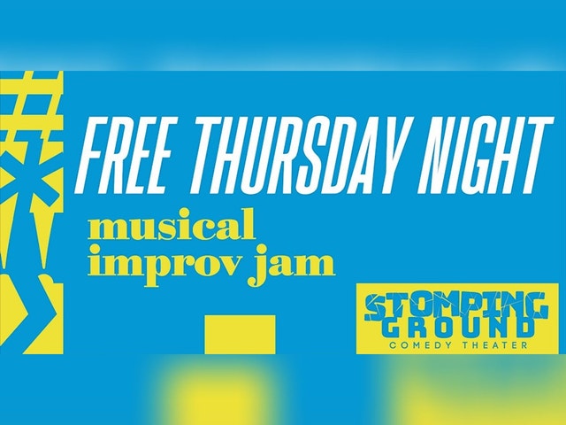 Every fourth Thursday, join us for a FREE Musical Improv Jam! We’ll sing songs, play scenes, try solos and duets, get some reps on stage, and (most importantly) have fun. No musical experience is required—beginners are welcome! What to expect: • Connecting and playing through group warm‑ups • Facing the fear and having fun singing • Turning scenes into songs Registration is optional and just helps us plan. You’re always welcome to drop in and play! The Musical Improv Jam happens every fourth Thursday from 8–10 PM and is BYOB. Must be 18 or older. All participants are expected to follow the Stomping Ground Student Handbook. View our current policies and FAQs here [https://www.stompinggroundcomedy.org/frequently-asked-questions/].