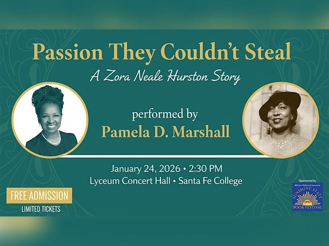 Although Zora Neale Hurston was born in Alabama, she moved with her family to Florida at the age of three and is counted as one of Florida’s great literary figures. She attended Howard University, then Barnard College, where she earned a BA in Anthropology, followed by two years of graduate studies at Columbia University. She became a central figure in the Harlem Renaissance, publishing four novels, numerous nonfiction anthropology studies, poetry, and several plays. Her literary papers reside in the University of Florida Smathers Libraries. While she continued to write and to conduct ethnographic research in the Caribbean, her fiction fell out of the literary limelight until Pulitzer-prize-winning author Alice Walker revived interest in her work posthumously. Pamela D. Marshall is an author, actress, Peace Ambassador, and Executive Director of At The WELLness Network/Publishing. A passionate advocate for justice and healing through storytelling, she has written and performed original one-woman shows, including a stirring portrayal of civil rights icon Fannie Lou Hamer, and The Lullaby Rebellion – A Mother’s Day Gift to America, a searing tribute to the enslaved Black women, “wet nurses”, forced to nurse a nation. Pamela has embodied historic figures such as Ida B. Wells in If These Dolls Could Talk and Anna Murray-Douglass in A Conversation with Frederick Douglass and Captain John Brown. She is the author of four books and uses her pen and platform to make forgotten voices unforgettable.