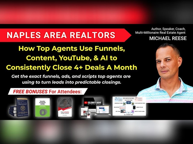 LEARN THE RIGHT WAY TO USE SOCIAL MEDIA AND FUNNELS TO GET CLIENTS FAST... We generated over 300,000 leads online over the past 3 years and figured out exactly what works... and what doesn't... Most Real Estate Agents (including us in the beginning) are doing it completely wrong! Running weak ads to cold audiences who don't know who you are... Then trying to chase them down to convert them is not fun or efficient. Fortunately, you're going to learn a better way! You'll learn: * How to create "Omnipresence" with social media for pennies so people see you everywhere * The simple video formula that builds you an engaged audience of prospects that know, like, and trust you * The exact YouTube, Facebook® and Instagram® Ads and calls-to-action that have the highest conversion. * How to build an "Invisible Funnel" without any tech overwhelm