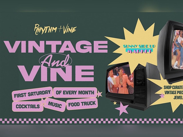 RHYTHM & VINE AND SUNNY SIDE MARKET PRESENT: VINTAGE & VINE! EVERY 1ST SATURDAY | 4PM-8PM SHOP CURATED LOCAL VENDORS, VINTAGE PIECES, ACCESSORIES, JEWELRY & MORE! Enjoy: Craft Cocktails Food Truck Music 21+ *RSVP To Receive The Complimentary Shot Of The Day! 954-868-4351 401 NE 5th Terrace, Fort Lauderdale, FL 33301 @Rhythm_Vine | www.Rhythm-Vine.com