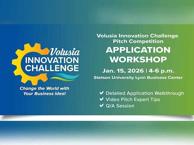 Join Us for the Volusia Innovation Challenge Application Overview Workshop! The Workshop will be held at Stetson University Lynn Business Center, 345 N Woodland Blvd, DeLand. Are you ready to showcase your innovative business idea? Attend this in-person workshop where you'll be provided with a comprehensive overview of the application process for the 2026 Volusia Innovation Challenge Pitch Competition [https://www.volusiabusinessresources.com/volusia-innovation-challenge/] happening March 26, 2026. We recommend you bring your laptop or device for this working application prep session. Event Highlights: * Detailed Application Walkthrough: Understand the key components and information required for your application. * Expert Tips: Learn valuable tips for creating a compelling video pitch that stands out. * Q&A Session: Get all your questions answered by our experts. Don't miss this opportunity to gain insights and guidance to help you succeed in applying for the Volusia Innovation Challenge Pitch Competition. We look forward to seeing you at the workshop! Note: You must be over 18 to attend the workshop and apply to the Volusia Innovation Challenge.