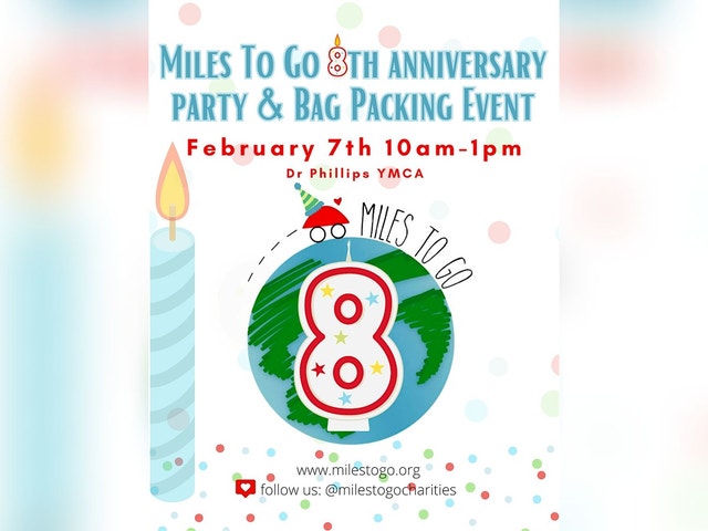 MILES TO GO 8TH ANNIVERSARY PARTY & PACKING DAY! Join us to celebrate 8 amazing years of Miles To Go! It's a day full of free fun, friends, and philanthropy! Whether you're here to party or lend a hand, there’s something for everyone. Come share laughs, good vibes, great food and make some awesome memories with us! Featuring: * Miles To Go Pop Up [https://www.milestogocharities.org/collections/all] * DJ * Family Friendly Activities * Prizes With MTG & the DP YMCA it's all about COMMUNITY! All ages are welcome! We hope to pack 500 Miles To Go Bags! Want to help? You are invited to (not required) contribute the following: [https://www.amazon.com/hz/wishlist/ls/1C4ZS34FY5YF4?ref_=wl_share] * Deodorant * Travel Sunblock * Travel Toothpaste * Travel Hand Sanitizer Donate Funds For Supplies Here [https://donors.tuesday.app/donate/TUES375]