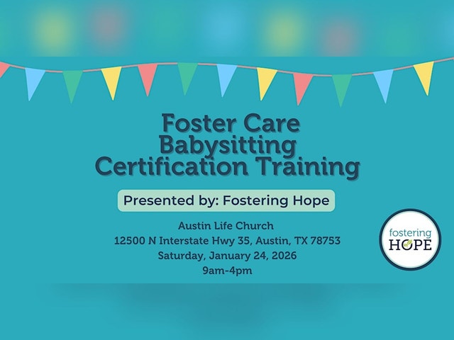 Join us on Saturday, January 24 from 9:00am-4:00pm CT at Austin Life Church for a full-day training designed to equip youth and adults to provide safe, informed, and impactful care for foster, adoptive, and kinship families. Throughout the day, participants will gain practical skills and knowledge in trauma-informed care, medication administration, and safe transportation practices. The afternoon will include CPR and First Aid certification, ensuring you leave confident and prepared to support families in meaningful ways. We’ll begin the morning with coffee and a light breakfast, and lunch will be provided for all registered attendees. Whether you’re looking to become a certified babysitter, volunteer, or simply better understand how to support families in your community, this training offers everything you need in one day. Austin Life Church 12500 N Interstate Hwy 35 Austin, TX 78753 We’d love to have you join us as we work together to strengthen and serve families across Central Texas! For additional details or questions please reach out to our Programs Administrator, Patty Madden at: patty@iamfosteringhope.org