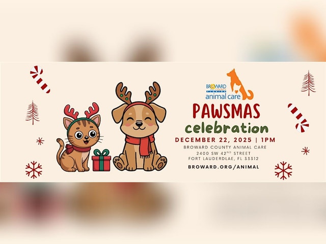 Stop by Broward County Animal Care for this family friendly event! * Pass out a holiday meal and treats to a shelter dog or cat * Meet our adoptable animals looking for a home for the holidays * Donate supplies for the shelter animals * Learn about becoming a foster or animal shelter volunteer Help Support our shelter pets with a donation! View our wish list below or view our amazon wish list >> amzn.to/42441bE [http://amzn.to/42441bE?fbclid=IwZXh0bgNhZW0CMTAAYnJpZBExeDd1b09hQ3hTU0ZOVEZrZ3NydGMGYXBwX2lkEDIyMjAzOTE3ODgyMDA4OTIAAR7HAM-orugq_jUkTshua65I-ZHU3eXMaKTSbu1T13rEdfZlJIPj3cFwkXmvmA_aem_YZDuHSRsjE3GZcGeaIK7PA] Pawsmas Celebration Donation Wish list: * Dog & Cat Dry/Canned Food * Dog & Cat Toys * Dog & Cat Treats * Peanut Butter (All Natural, Creamy) * Pumpkin Puree (Natural, No sugar/artificial sweeteners) * Unsweetened Applesauce * Linens: New/Gently used towels, blankets, sheets, pillowcases, comforters * Cardboard boxes (cereal, snack, small amazon/chewy boxes) * Cardboard rolls (paper towel, etc.) * Craft pipe cleaners * Plastic/Hard-shell pet carriers * New plastic or metal litter pans * New litter box scoopers * Kitten Milk Replacement (KMR) * Miracle Nipples * Pet nursing kits