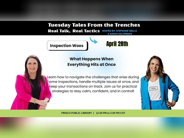 TALES FROM THE TRENCHES Feeling stressed by inspection surprises? Join us for an interactive session where you’ll learn how to handle multiple issues with confidence, stay in control, and keep your transactions moving smoothly. Don’t miss out—Reserve your spot now!