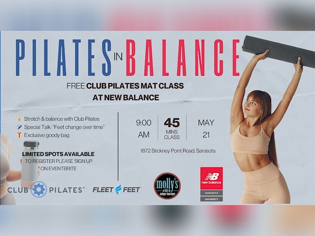 Welcome to Pilates in Balance! Join Club Pilates for an energizing and rejuvenating Pilates session at New Balance. This in-person event is perfect for all fitness levels, whether you're a beginner or a seasoned pro. Our experienced instructor will guide you through a series of exercises designed to improve your strength, flexibility, and overall well-being. Don't miss this opportunity to find your balance and center yourself. Spots are limited, register now to reserve your spot.