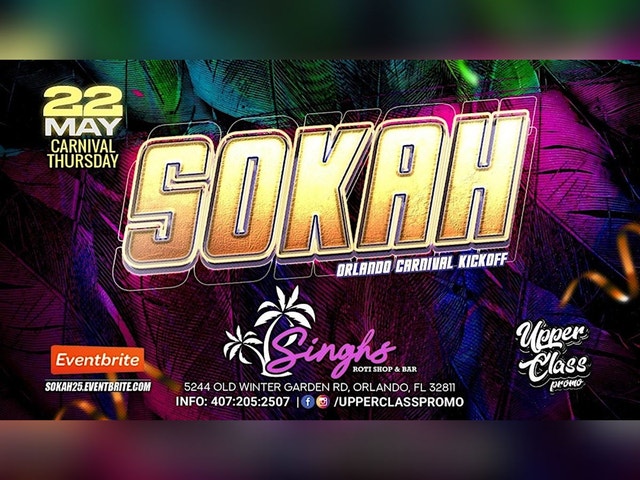 ORGANIZE YOUR CREWS FROM NOW! πΉπΉ π¬πΎ π―π² ππΉ π§π§ π§πΈ π΅π· π±π¨ πΊπΈ #SOKAH IS BACK FOR THE 2025 ORLANDO CARNIVAL WEEKEND! THURSDAY, MAY 22ND ON THE DECK AT SINGHS! DOORS OPEN AT 9PM! FREE ALL NIGHT WITH PASS FREE ALL NIGHT WITH PASS FREE ALL NIGHT WITH PASS MUSIC BY ORLANDOβS BEST CARIBBEAN DJs & SPECIAL GUESTS PASSING THRU! HOOKAH ON SALE --> UPPER CLASS HOOKAH FOOD ON SALE ---> UPPER CLASS EATS FOR MORE INFO 407-205-2507 or @drew_nms @upperclasspromo