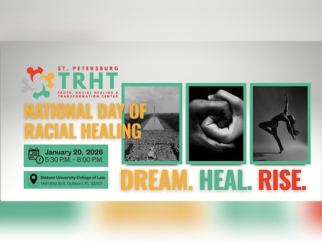 Celebrate the St. Petersburg National Day of Racial Healing! Join us for an inspiring evening of connection, storytelling, and community building. This year’s theme—Dream. Heal. Rise.—invites us to imagine a more just future, deepen our understanding of one another, and celebrate the rich diversity of our community through performance, dialogue, and shared reflection. Come take part in meaningful conversations and uplifting activities that help us heal and grow stronger together. The National Day of Racial Healing is observed annually on the Tuesday following Martin Luther King Jr. Day. On this day, people across the country gather in homes, schools, workplaces, and community spaces to engage in practices that foster racial healing and advance a more equitable future for all children. Thank you to our sponsors this year: Eckerd College Center for Spiritual Life, Embracing our Differences, Excelsior University, and Stetson Law. Additional event sponsorship opportunities are available. [https://drive.google.com/file/d/1T2BnIIy_y3JuLOCR6HvTlb5taVApUroL] In 2026, the St. Petersburg TRHT is launching a new $40 annual membership for those who believe in our work and want to help propel our mission forward. Learn more about membership or make a donation here [https://www.stpetetrht.org/sponsor-donor-levels]. Learn more about our work and contact us: www.stpetetrht.org | stpetetrht@gmail.com