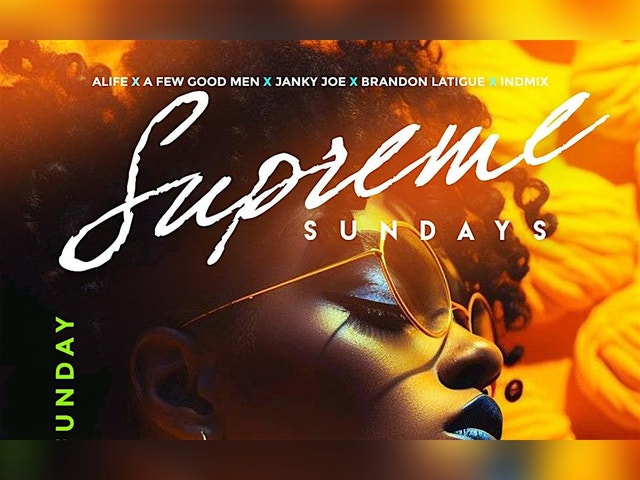 ALIFE x A Few Good Men x Janky Joe x Brandon Latigue x inDmix Present SUPREME SUNDAYS LATE BRUNCH x DAY PARTY New Sunday Funday Destination At Pour Behavior 2211 Travis St Houston TX Brunch 3p-6p Day Party & Sunday Funday 5p Until Soft Opening Sunday March 1st Reserve at SupremeSundays.com