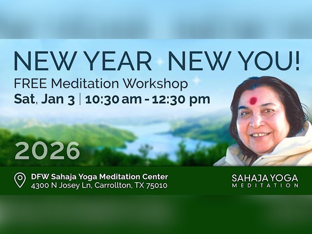 🌟 In 2026 — Meditate, Meet & Get Motivated! 🌟 🧘♀️ Join the FREE 7-Week Meditation Challenge that follows🧘♂️ Life and destiny give us many chances to rebound. As the founder of Sahaja Yoga Meditation, Shri Mataji Nirmala Devi said, ‘clouds can cover our innocence but never eliminate it’. Let us rediscover the child within us in 2026 and rediscover our joy in a simple life, free from thoughts, worries, and desires. Just living in the moment and cherishing it🌱💫 VENUE 📍Sahaja Yoga Meditation Center 4300 N Josey Ln, Carrollton, TX 75010 AGENDA ⏰10:30 AM - 11:15 AM Introduction to Sahaja Yoga Meditation About Subtle System - Chakras and Energy Channels Self-Realization - Inner Energy Awakening & Meditation ⏰11:15 AM - 12:00 PM Guided Meditation and Channel Balancing Foot Soaking and Clearing Session ⏰12:00 PM - 12:30 PM Tea & Snack break Q&A Please join our WhatsAppp group using the following link for reminders/updates on this event: https://chat.whatsapp.com/ExYFTtHJoxFFHOygihlg4Y [https://chat.whatsapp.com/ExYFTtHJoxFFHOygihlg4Y] Sahaja Yoga meditation sessions are always FREE. A FREE 7-week course will start from the following week (Saturday, January 10th – Saturday, February 21st) All our FREE Online & In-Person Meditation Classes be found here: https://dfwmeditation.org/ [https://dfwmeditation.org/] ✨ Come as you are. Grow at your own pace. Rejoin anytime. ✨ #Newyear #Newyou #resolutions #meditation #yoga #meditation #kundalinimeditation #innerpeace #peace #love #joy #spirituality #selfrealization #energy #kundalini #chakras #mentalpeace #mentalwellness #holistic #holistichealth #DFW #Dallas #Carrollton #Frisco #Plano