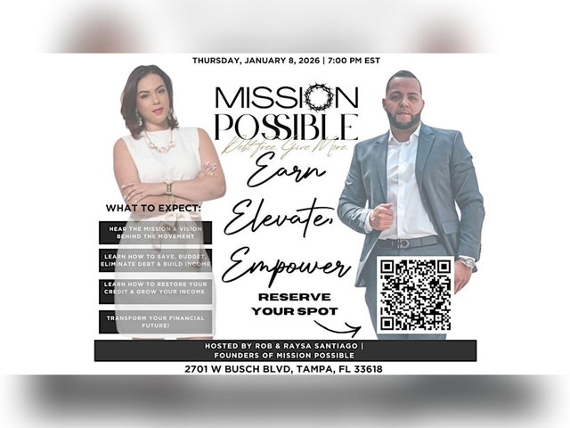 Kick off 2026 with a powerful in-person Business & Networking Night in Tampa. This event brings together: • Realtors & lenders looking to help more clients qualify and close • Tax professionals seeking referral partnerships and added value for clients • Entrepreneurs & professionals looking for additional income opportunities • Individuals interested in restoring credit and improving their financial future You’ll learn how our Tampa-based network collaborates to: ✔️ Support clients with credit and cash-flow solutions ✔️ Build referral-based partnerships across industries ✔️ Create additional income opportunities ✔️ Grow a strong, connected local market This is a relationship-first environment — focused on education, collaboration, and opportunity. 👥 Open to the public 🤝 Bring a guest or colleague 🎯 Goal: 30+ attendees ✅ Registration encouraged Come connect, learn, and grow with us in 2026. 🎤 WHAT YOU’LL LEARN (OPTIONAL EVENTBRITE SECTION) • How credit impacts buying power and business growth • Ways professionals collaborate through referrals • Opportunities to earn additional income • How the Tampa market is growing in 2026 🎯 WHO SHOULD ATTEND ✔ Realtors ✔ Lenders ✔ Tax Professionals ✔ Entrepreneurs ✔ Small Business Owners ✔ Anyone looking to improve credit or earn extra income