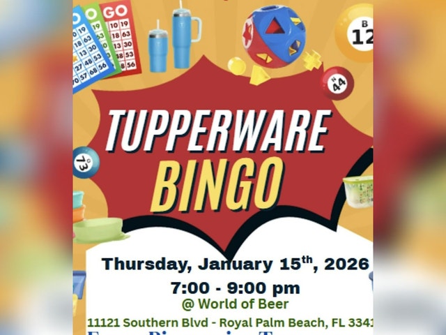 TUPPERWARE BINGO Get ready for a fun evening of Tupperware bingo! Join us in person for laughs, prizes, and some classic bingo action with a twist. It's the perfect chance to hang out, win cool stuff, and maybe discover some awesome Tupperware goodies. Bring your friends and let’s make this bingo night one to remember!