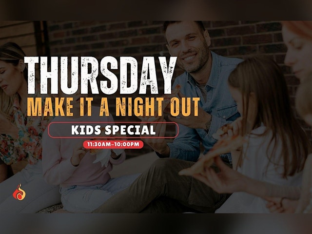 Thursday Kids Special Family nights just got better. Join us every Thursday and enjoy a stress-free dinner everyone will love. With our Thursday Kids Special, kids eat FREE with the purchase of each adult entrée. It’s the perfect opportunity to gather around the table, enjoy great food, and make family time even more rewarding. Whether you're stopping by after school, sports practice, or simply looking for an easy dinner option, this special makes dining out affordable and fun for the whole family. Bring the kids, enjoy your favorite dishes, and let us take care of dinner. Offers are subject to change without notice.