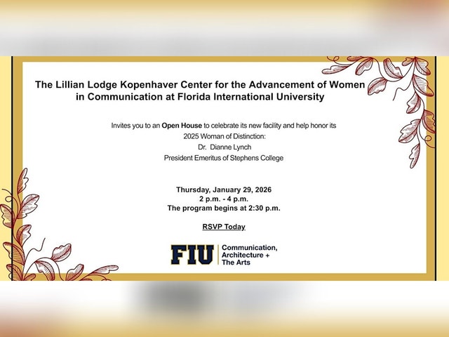 Join the Lillian Lodge Kopenhaver Center for an open house celebrating our new space and honoring our 2025 Woman of Distinction, Dr. Dianne Lynch, President Emeritus of Stephens College. This special event brings together university leadership, community partners, students, and supporters to recognize leadership, excellence, and the Center’s continued commitment to advancing women in communication. Guests can expect a program highlighting the Center’s mission and vision, recognition of the 2025 Woman of Distinction, and remarks from distinguished speakers. The celebration will also include opportunities to connect with colleagues and community leaders while experiencing the Center’s new facility. This event reflects FIU’s continued commitment to advancing women’s leadership, scholarship, and influence in communication and media. We look forward to welcoming you to this meaningful milestone. Parking Information Parking will be located at Florida International University’s Biscayne Bay Campus. Visitors may park in designated visitor parking areas near the event location. Parking attendants and campus signage will be available to assist upon arrival. Please allow additional time for parking and walking to the venue. For campus maps and directions, guests may visit FIU Biscayne Bay Campus online prior to arrival. Additional parking details to be provided soon.