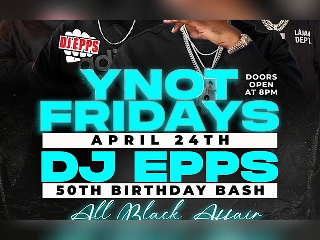 DJ Epps' 50th birthday bash featuring live performances and multiple DJs YNOT FRIDAYS-DJ EPPS 50TH BIRTHDAY BASH- MEMPHIS BLEEK MIMS DJ STAKZ MUSIC SHORTY DOO WOP DJ KING MEGA DJ TITO LUV DOORS OPEN AT 8PM