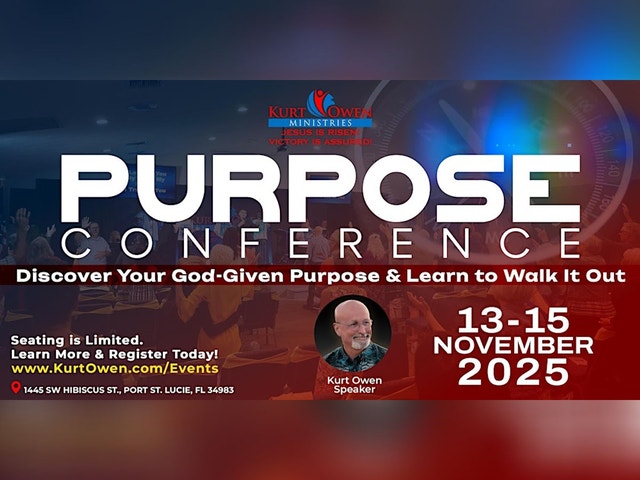 GET READY TO BREAK FREE FROM FEELING STUCK, FRUSTRATED, OR UNFULFILLED! Join us at the electrifying 2025 Purpose Conference, where Pastor Kurt Owen will ignite your soul with powerful, Biblical insights to unlock your God-given purpose! Experience the thrill of discovering a life filled with joy, meaning, and alignment with God’s unique plan for YOU. This life-changing event will empower you to step boldly into His will with unshakable confidence. DON'T MISS YOUR OPPORTUNITY TO BE TRANSFORMED, INSPIRED, AND RENEWED—SECURE YOUR SPOT NOW FOR A JOURNEY TO A PURPOSE-DRIVEN LIFE! TENTATIVE CONFERENCE SCHEDULE Thursday, November 13, 2025 7:00 PM (Doors Open at 6 PM) Friday, November 14, 2025 9:00 AM–12:00 PM 7:00 PM (Evening Session) Saturday, November 15, 2025 9:00 AM–12:00 PM (Final Session) REGISTRATION: There is no cost to attend this conference. The faithful partners of Kurt Owen Ministries have generously underwritten the costs of this conference to strengthen & equip you to fulfill your Jesus-given purpose in strong faith. Seating is Limited. REGISTER TODAY! HOTEL INFORMATION A block of rooms is reserved at: Marriott Towne Place Suites 10460 SW Village Pkwy. Port St. Lucie, FL, 34987 (772) 272-1026 Start Date: Thursday, November 13, 2025 End Date: Saturday, November 15, 2025 The hotel offers a special group rate: $109.00 per night. When reserving, please use the Group Name: KOM PURPOSE CONFERENCE Click here to BOOK your group rate for the KOM PURPOSE CONFERENCE [https://www.marriott.com/event-reservations/reservation-link.mi?id=1756142395262&key=GRP&app=resvlink] _____________________________________________________________________________________________