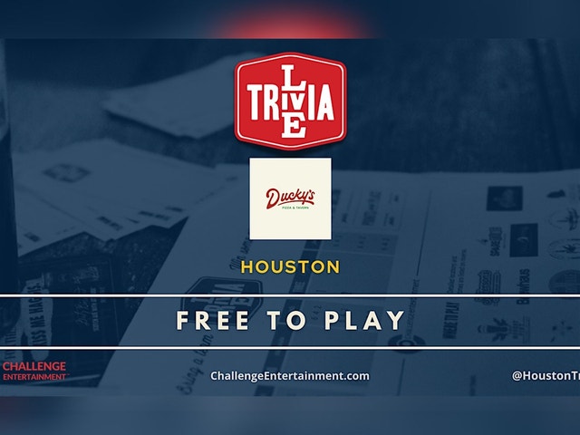 HOUSTON – MONTHLY CE LIVE TRIVIA NIGHT IS HERE! #FREE Mark your calendars! Starting 2/4, Ducky's Pizza & Tavern will host a once-a-month #LiveTrivia night on the FIRST WEDNESDAY of every month at 6:30PM!! It’s your monthly dose of competition, laughs, and prizes. Free to play and always a blast. Grab your crew, bring your A-game, and let’s make this night one to remember! #HoustonTrivia powered by ChallengeEntertainment.com #Free #DuckysPizza #TriviaInHouston #WednesdayTrivia #WhatToDoTonight #YourThirdSpace Ducky's Pizza & Tavern - 1927 Fairview St, Houston, TX