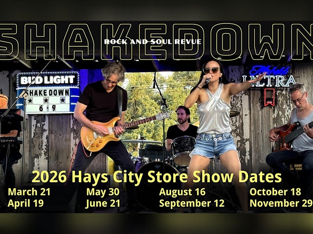 Join Shakedown at Hays City Store, a Texas eatery and Icehouse. Grab a seat under the oaks and enjoy scratch-made Texas comfort food, wood-fired pizzas, hand-crafted cocktails, local beers and spirits, and great music About the Band: Shakedown Rock and Soul Revue plays a mix of the hits from the 60s, 70s, & 80s: rock, Motown/soul songs, and some country favorites. For a sampling of our music, song list & videos, check out our websitehttp://www.shakedownaustin.com/ www.shakedownaustin.com [http://www.shakedownaustin.com/].