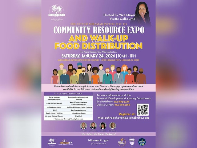 Learn about local programs and services at this informational expo and food distribution Come learn about the many Miramar and Broward County Programs and services available to our Miramar residents and neighboring communities