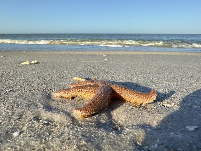 Tour will begin promptly at 10 a.m. at the main tram stop in parking lot 1. The closest restroom and water fountain are located in Parking Lot #1. For questions, call 239-707-6328. Join a park ranger for a leisurely walk over the estuary and along the beach to discover the natural treasures of the Lovers Key shoreline. Learn about seashells, crustaceans, starfish, and other creatures that can be found in our waters. ADA Info: 1.0 mi length trip, will travel across sand and a boardwalk, full sun, beach wheelchair is available upon request. Program is free with paid park entry, space is limited; reservations are required. Photo by Ranger Gibbons