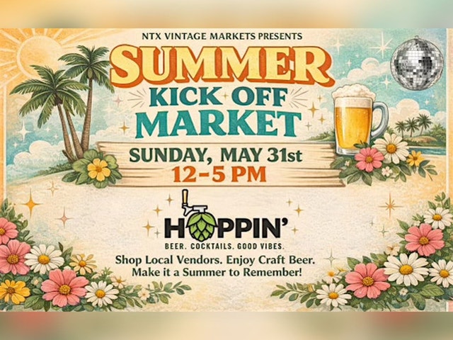 Start the season with sunshine, shopping, and good vibes at our Summer Kick Off Market! Join us on Sunday, May 31st from 12–5 PM for an afternoon of supporting local vendors, sipping craft beer, and soaking up the energy of a laid-back summer day. Enjoy: • Local vendors & small businesses • Unique finds, handmade goods & boutique items • Craft beer, cocktails & refreshing drinks • A fun, social atmosphere with great music and summer vibes 📍Hoppin’ Grapevine- 3540 Grapevine Mills Blvd. N. Grapevine, TX 🗓 Sunday, May 31st ⏰ 12–5 PM Free to attend | Family-friendly Shop local, grab a drink, and make it a summer to remember!