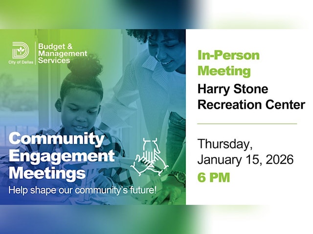 Your opinion is important to us! Attend this in-person meeting to give feedback on which community programs should receive federal funding. We are discussing funding supports for low-income neighborhood improvements, homebuyers down payment assistance, youth & senior programming, homelessness prevention, and housing for persons with HIV/AIDS. Location: Harry Stone Recreation Center, 2403 Millmar Dr. Dallas, TX 75228 [https://maps.app.goo.gl/p3jL1Xr3CVgLUyPTA] Time: 6:00 PM Take the Survey: You can share your thoughts by completing the survey via the provided web link: bit.ly/neighborhoodpm [https://forms.office.com/pages/responsepage.aspx?id=nnA1KQzBCUijAoUtNp-HAM-XBsIHAtRArOJsAEgQiSJUMFBTTkczUjE2UEFMTzg1T1E4SUozWlVXRC4u&route=shorturl]. Paper copies will also be available for in-person attendees. ---- ¡Su opinión es importante para nosotros! Asista a esta reunión presencial para dar su opinión sobre qué programas comunitarios deben recibir fondos federales. Discutiremos apoyos financieros para mejoras en vecindarios de bajos ingresos, asistencia para el pago inicial de compradores de vivienda, programas para jóvenes y personas mayores, prevención de la falta de vivienda y vivienda para personas con VIH/SIDA. Ubicación: Harry Stone Recreation Center, 2403 Millmar Dr. Dallas, TX 75228 [https://maps.app.goo.gl/p3jL1Xr3CVgLUyPTA] Hora: 6:00 PM Complete la Encuesta: Puede compartir sus opiniones completando la encuesta a través del enlace web proporcionado: bit.ly/neighborhoodpm [https://forms.office.com/pages/responsepage.aspx?id=nnA1KQzBCUijAoUtNp-HAM-XBsIHAtRArOJsAEgQiSJUMFFKM080UktSTjlXWjRVUk40S1QxRFlJTi4u&route=shorturl]. Copias en papel también estarán disponibles para los asistentes en persona.