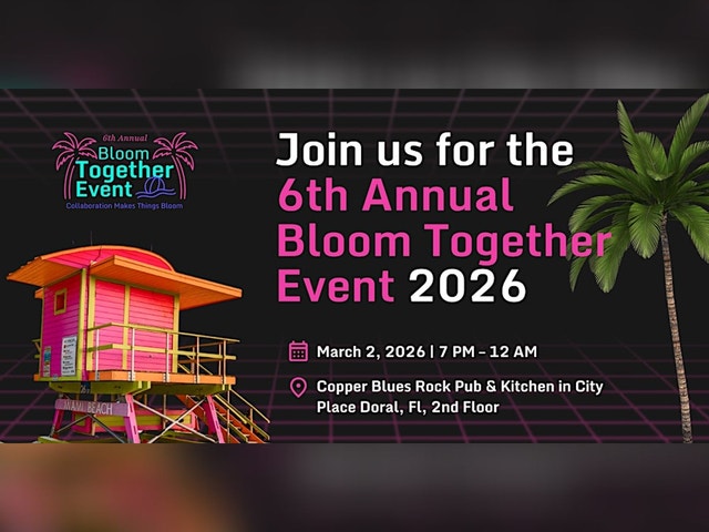 🌸 ABOUT THIS EVENT At its core, the floral industry has always been built on community — relationships, collaboration, and meaningful networking that turns conversations into lasting partnerships. Now entering its 6th year, The Bloom Together Event has become one of the floral industry’s most meaningful gatherings. It is the largest collaboration of its kind, created by the floral community, for the floral community, to showcase the true power of networking, collaboration, and coming together as one industry and one community. On March 2, 2026, from 7:00 PM to 12:00 AM, growers, breeders, wholesalers, importers, distributors, logistics partners, educators, innovators, and passionate floral professionals from across the entire supply chain will gather at Copper Blues Rock Pub & Kitchen – CityPlace Doral (2nd Floor). When you step into Bloom Together, you step into community, connection, and collaboration. 🌺 WHAT TO EXPECT An evening designed for networking, connection, and celebration, featuring: 🎶 Live music & a DJ 💃 Dancing 🌸 Floral installations 🎉 Hora Loca 🍹 Drink specials — $5 shots, $20 beer buckets & featured cocktails 🍽️ Light bites available 🎟️ Free entry 🍹 Complimentary drink ticket for the first 100 guests 🎁 Plus: a fun social media contest throughout the night with gift cards up for grabs! #BTE6 🌼 WHO CAN ATTEND Professionals from all sectors of the floral industry are welcome. There is no membership requirement and no association affiliation required. This is an open and inclusive gathering — created by the floral community, for the floral community — where everyone is welcome to connect, collaborate, and belong. 🌸 ABOUT THE EVENT Bloom Together is an independent, community-led gathering created to bring the floral industry together to connect, network, celebrate, and collaborate. The event is designed to support the broader floral industry ecosystem by encouraging open collaboration, meaningful relationships, and shared growth across all sectors. It’s a welcoming space to build new relationships, reconnect with familiar faces, and strengthen industry bonds — a perfect way to start the year together. 🔥 NEW THIS YEAR: THE BLOOM SHOW BLOOMING SIDE CHATS (7:00–8:00 PM) The community asked — and we listened. Before The Bloom Together Event fully kicks off, join us for The Bloom Show Blooming Side Chats — relaxed, honest conversations that encourage deeper connection and more meaningful networking with industry leaders and peers. No presentations. No panels. Just real dialogue and open conversation. 🌱 FEATURED CONVERSATIONS INCLUDE: * The Business & A.I. Side of Supermarket Flowers with Joe Don * What Florists Truly Need From Their Suppliers with Penny Lane & Ace Berry * Hiring & Building Your Employer Brand with Jazmin Albarrán * And more to come 🎤 Hosted by Mimi Pacheco 🌺 JOIN US Sit at one table, rotate between conversations, or simply listen while enjoying a cocktail — network naturally, connect openly, and engage at your own pace. Everyone is welcome. 🔒 IMPORTANT NOTES 🌸 Over the years, 65+ companies and 400+ floral peers have come together — turning networking moments into collaborations and handshakes into long-term partnerships. 🌸 In 2026, all proceeds will directly support Seed Your Future and the American Floral Endowment, helping fund education, research, and programs that grow the next generation of floral and horticulture professionals. 🌸 WHY BLOOM TOGETHER MATTERS Bloom Together exists to strengthen the floral community by: * Creating meaningful, in-person connections and purpose-driven networking * Encouraging collaboration over competition * Supporting Seed Your Future and the American Floral Endowment * Bringing the entire floral supply chain together under one roof This event grows each year because of the passion, generosity, and shared commitment of the floral community itself and our contributors and collaborators. We are deeply grateful for the past six years — and invite you to continue growing this movement with us. ✨ REGISTRATION , SUPPORT & NOTES 🎟️ Tickets are free, but space is limited. Please RSVP before tickets run out — this helps us plan and create the best experience possible. The venue has limited space so by law tickets are attendance are limited- do to saftey guideline. ✨ If your company plans to bring more than three attendees, or if this is your third year (or more) attending, we warmly encourage you to consider contributing to help extend the event’s impact and support our industry nonprofits. 👉 To support or collaborate, email: bloomwith@newbloomsolutions.com Subject line: “Support The Bloom Together Event.” Each attendee must reserve their own ticket using a unique email address. Bloom Together is not a 501(c)(3). While not a registered nonprofit, the event is not operated for profit. Any funds remaining after covering costs are donated directly to Seed Your Future and the American Floral Endowment. 🌸 A TRIBUTE TO OUR COMMUNITY Bloom Together was created to bring a shared mission to life — building a more connected floral industry through community, collaboration, and meaningful relationships. It exists as a space where the entire floral community can network, connect, collaborate, and grow together. The event is stewarded by New Bloom Media, whose mission is to help create a more connected, collaborative floral industry by bringing people, ideas, and conversations together in purposeful ways. We can’t wait to bloom together with you in 2026. #bte6 Stay tuned — and enjoy a look back at last year’s event as we count down. 🌸