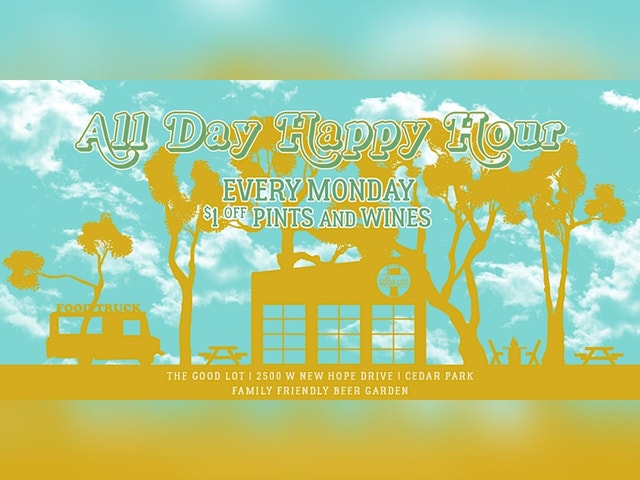 All-day happy hour with $1 off drafts and wine at The Good Lot It's happy hour all day long at The Good Lot! Enjoy $1 off draft pints and glasses of wine all day long every Monday. Cheers to that!