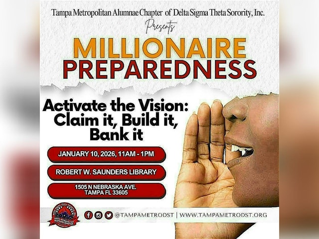 The Millionaire Preparedness Club is back with our 2026 Signature Event focused on turning strategy into action. This experience is for visionaries ready to stop sitting on ideas and start walking in purpose. If you are serious about your next money move, this event was designed for you. Join us for a powerful afternoon of clarity, strategy, and activation. Whether you are launching a new financial goal or simply ready to level up, this is your space to get aligned and move forward with confidence. Date: Saturday, January 10, 2026 Time: 11:00 AM to 1:00 PM Location: Robert W. Saunders Sr. Library, 1505 N Nebraska Ave, Tampa, FL 33605 Your vision matters. Your next move starts here. Let’s build it together.