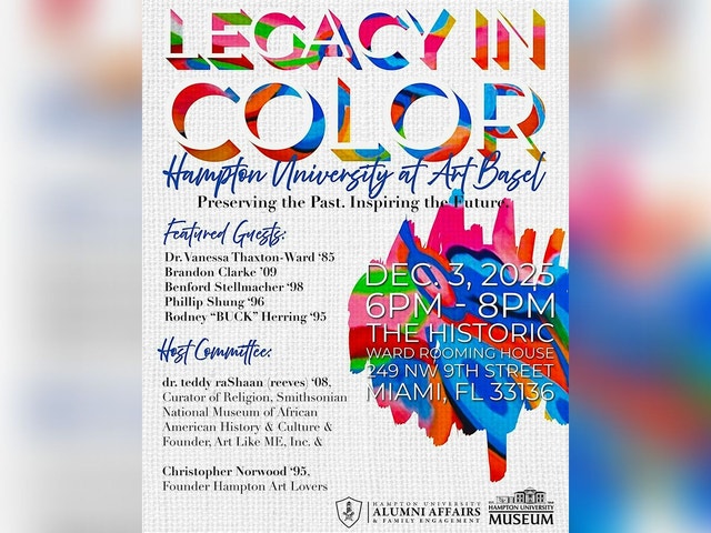 Legacy in Color: Hampton University at Art Basel | Preserving the Past. Inspiring the Future. Join us on Wednesday, December 3rd, 6-8pm | Hampton University Museum & Hampton University Alumni Affairs | Hosted by Dr. Teddy RaShaan (Reeves) ’08, Curator of Religion at the Smithsonian National Museum of African American History & Culture and Founder of Art Like Me, Inc., together with Christopher Norwood ’94, Imani Greene ’94, and Darryl Neverson ’92, Founders of Hampton Art Lovers.You are invited to an unforgettable evening celebrating the legacy, history, and future of the Hampton University Museum, the oldest African-American museum — and the oldest African-American art museum — in the United States. Founded in 1868, the Museum holds more than 9,000 works spanning African, Native American, Asian, Oceanic, and African-American art. It remains one of the nation’s most important repositories of Black cultural memory and artistic achievement. Legacy in Color brings this extraordinary heritage to Art Basel Miami, celebrating Hamptonian artistry and raising support for the Museum’s continued preservation and growth. The evening will include remarks from Dr. Vanessa Thaxton-Ward ’85, Director of the Hampton University Museum, who will share insights on the Museum’s rich history, its mission, and how your support safeguards this national treasure for future generations. The evening will also spotlight six Hamptonians who are showing work during Miami Art Week, Brandon Clarke ‘09, Benford Stellmacher ‘98, Phillip Shung ‘96, & Rodney “BUCK” Herring ‘95, Ronda Brown '94 & Hasaan Paige '92.Ticket Proceeds to Benefiit Hampton University Museum.: https://hamptonalumnievents.universitytickets.com/.../eve... [https://hamptonalumnievents.universitytickets.com/w/event.aspx?id=1543&p=1&fbclid=IwZXh0bgNhZW0CMTAAYnJpZBExdXVzWlJUNmluTmFMeDFBRHNydGMGYXBwX2lkEDIyMjAzOTE3ODgyMDA4OTIAAR62vhhKvRa5gRP7WQfGadz6Ae2xJoTgib3wiyzjO6pDm_LycaXdtuyPln5DTQ_aem_LC-nJuqNnatE7-nAOIsRdQ]The first 35 tickets purchased will receive a limited-edition print (edition of 35) of a new HBCU-inspired artwork by Brandon Clarke ’09. Five AP (Artist Proof) prints will be available for purchase at $200.