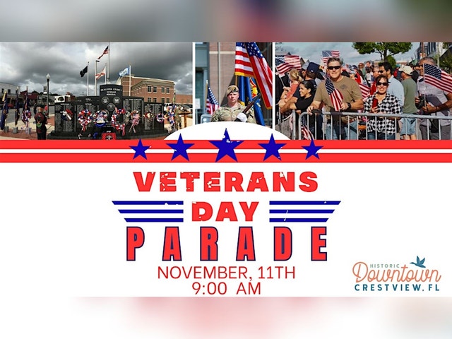 Join us in honoring the men and women who have served our country by participating in the Veterans Day Parade in Downtown Crestview. The parade will take place on Veterans Day, beginning at 9:00 AM and traveling through the heart of downtown. Following the parade, the community will gather for a Veterans Day Ceremony at 11:00 AM to pay tribute to those who have served in our Armed Forces. This registration is for parade participants only. Local organizations, schools, businesses, civic groups, and individuals are encouraged to take part and help make this a meaningful and memorable event for our community and veterans. Reserve your spot in the parade today and join us in celebrating and honoring our nation’s heroes.