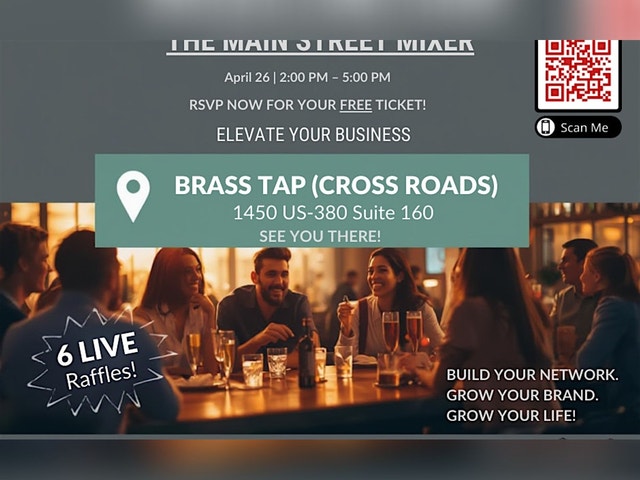 WELCOME TO THE MAIN STREET MIXER! Get ready to mingle and meet cool folks at The Main Street Mixer. This is an awesome in-person event where you can chill, chat, and make new connections in a relaxed setting. Whether you're here to network or just have fun, it's the perfect spot to enjoy good vibes and great company. Don’t miss out on this chance to be part of something special right on Main Street!