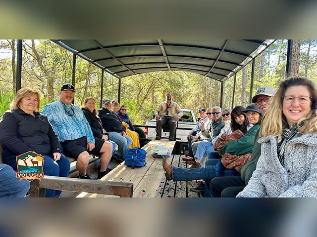 The Volusia County Explore Volusia program invites you to climb aboard the eco-buggy with Volusia County Resource Stewardship Director Nick Dunnam, Chief of Land Management Hunter Folmar, and Environmental Specialist Tommy Nordmann for a tour of Deep Creek Preserve. We’ll discuss the agricultural history of the property, methods of management and restoration of the native ecosystems, and the native plants and animals that reside there. ** Important note: Please arrive 15 minutes prior to complete a waiver. Waivers must be completed in full to participate in the program. Waivers can be downloaded at Explore Volusia [https://www.volusia.org/services/community-services/resource-stewardship/land-management/explore-volusia.stml] and completed ahead of time. ** Some GPS devices and phone apps will take you to the wrong location. Please confirm the meeting place and directions ahead of time. You can navigate to the exact location using this link: https://maps.apple.com/?ll=28.951442,-81.097185&q=Dropped%20Pin&t=h [https://maps.apple.com/?ll=28.951442,-81.097185&q=Dropped%20Pin&t=h] ACTIVITY: The tour will take place on a hay-ride style, covered trailer with benches. There will be some easy, short walks. RESERVATIONS: Required. Unless you have a confirmation email, you are not registered. TICKETS: No printed ticket is necessary. AGES: All ages are welcome. ATTIRE: closed-toe shoes that can get muddy and wet and comfortable clothing for the outdoors ** Some of our trails have mud and/or standing water because they are located in wetland ecosystems and because of seasonal rains and high tides. We recommend you bring a pair of waterproof boots in addition to your regular hiking shoes if you don't want your shoes to get wet. Our leader will let you know the condition of the trails prior to the start of the program. WHAT TO BRING: water, sunscreen, and bug spray FACILITIES: There is a port-a-let but no running water on site. For more information, contact Tommy Nordmann at tnordmann@volusia.org or call (386) 943-7081, ext. 21266. ** Following the successful completion of your registration, you should receive a confirmation email, and two days prior to the program you will receive a reminder email. These emails are sent automatically by Eventbrite. If you do not receive them, please contact Tommy at the email address above.