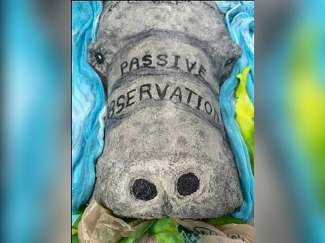 A contemporary art display featuring David Valiente's intricate manatee sculpture Image: Manatee (detail) by David Valiente