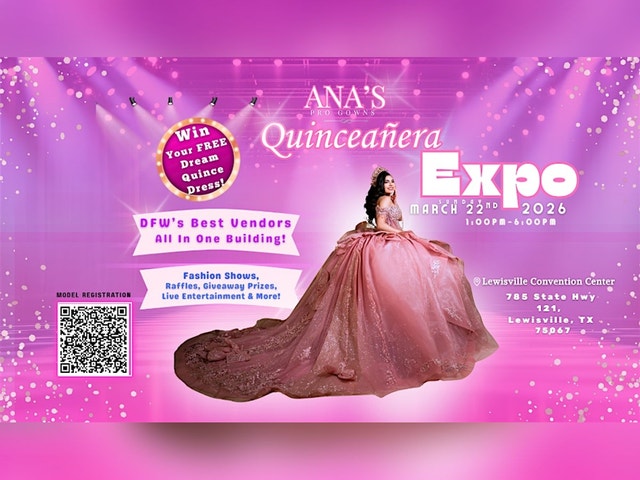 DONT MISS ANA'S QUINCEAÑERA EXPO! Come and enjoy a unique in-person experience where everything revolves around quinceañeras. Discover the latest trends in dresses, makeup, music, and much more to make your special day unforgettable. Meet amazing vendors, try products, and get inspiration for your celebration. It's the perfect place to plan your big party with style and fun! ¡NO TE PIERDAS ANA'S QUINCEAÑERA EXPO! Ven a disfrutar de una experiencia única en persona donde todo gira alrededor de las quinceañeras. Descubre las últimas tendencias en vestidos, maquillaje, música y mucho más para hacer de tu día especial algo inolvidable. Conoce proveedores increíbles, prueba productos, y obtén inspiración para tu celebración. ¡Es el lugar perfecto para planear tu gran fiesta con estilo y diversión!