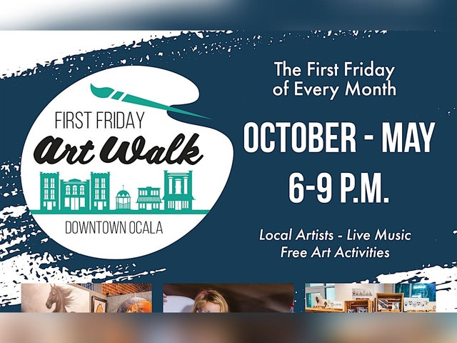 The First Friday Art Walk takes place on the first Friday of each month, October through May, from 6:00 p.m. to 9:00 p.m., celebrating local artists and businesses. This free event is located within Ocala’s Historic Downtown on the Ocala Downtown Square. Event festivities include over 30 artist displays, monthly live entertainment, free family art activities provided by local arts organizations and extended shopping hours. The public is invited to enjoy an evening of art, live performances, and downtown shops and restaurants. Pick up an event map on the square at the Ocala Cultural Arts tent on the south side of the Square. In the event of inclement weather, the First Friday Art Walk will be cancelled. For more information, please contact the City of Ocala Cultural Arts at 352-629-8447 or artinfo@ocalafl.gov; or visit www.ocalafl.gov/artwalk [http://www.ocalafl.gov/artwalk]. Follow us on Instagram: @ocalaculturalarts