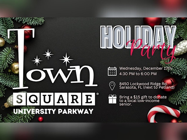 Town Square Holiday Party Come join us for a festive celebration at the Town Square University Parkway Holiday Party! Get into the holiday spirit with free music, food, and fun activities for all ages. The event will be held at 8450 Lockwood Ridge Rd, so mark your calendars and bring your friends and family along. Don't miss out on this exciting opportunity to kick off the holiday season with your community. See you there!