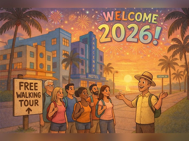 FREE MIAMI BEACH SUNRISE WALKING TOUR Rise and shine with us on this in-person adventure! Both today and yesterday (December 27/28) I was lucky enough to watch the beautiful sunrise over ocean from the sandy shore of Miami Beach. Inspired by this, I thought I could share this experience with others while also offering a free walking tour covering the so very interesting history and architecture of the city. We will be welcoming in the first Sunday of the new year. We will gather in front of the Art Deco Welcome Center on Ocean Drive at 6:45 am for an introduction to the tour, then head out to the beach in time to watch the sunrise at 7:07. We will then return to Ocean Drive for the bulk of the tour. The total time of the tour is approximately two hours. All this for free!
