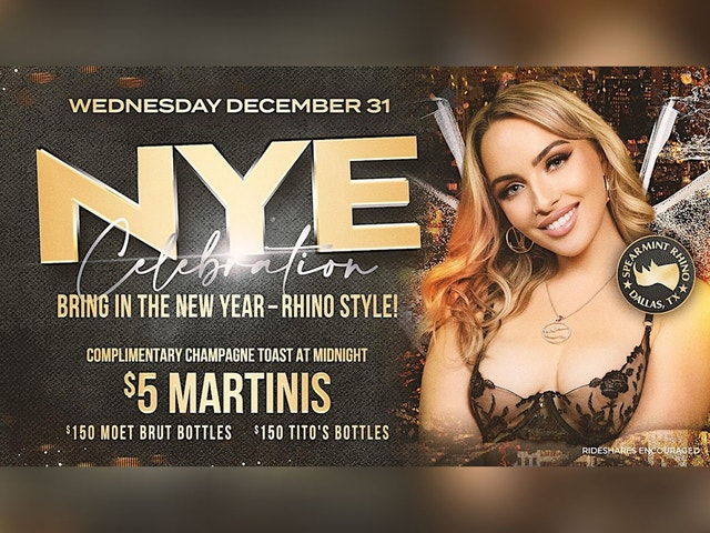 ✨ Bring in the New Year — Rhino style. Step into a sleek, champagne-fueled NYE experience where Dallas nightlife meets pure Rhino energy. This is the night to dress bold, sip strong, and let the countdown hit a little differently. From stunning dancers to a midnight toast that’ll have the whole room sparkling, NYE at Spearmint Rhino Dallas sets the tone for an unforgettable 2026. Get ready for martinis flowing, bottles popping, and a packed house that knows exactly how to celebrate. Whether you’re rolling deep with your squad or making your entrance solo, this party is built for big moments, bold vibes, and late-night magic. Ring in 2026 with the sexiest NYE party in the city — only at the Rhino. 💸 SPECIALS: • Complimentary Midnight Champagne Toast • $5 Martinis • $150 Moët Brut Bottles • $150 Tito’s Bottles 🎉 WHAT TO EXPECT: • A high-energy NYE party with glamorous Rhino vibes • Midnight champagne toast to launch 2026 in style • Sexy dancers and nonstop celebrations all night • Bottle and martini specials to keep the party alive • A packed Dallas crowd ready for a wild countdown Pop bottles, raise your glass, and ring in 2026 with unforgettable Rhino style.