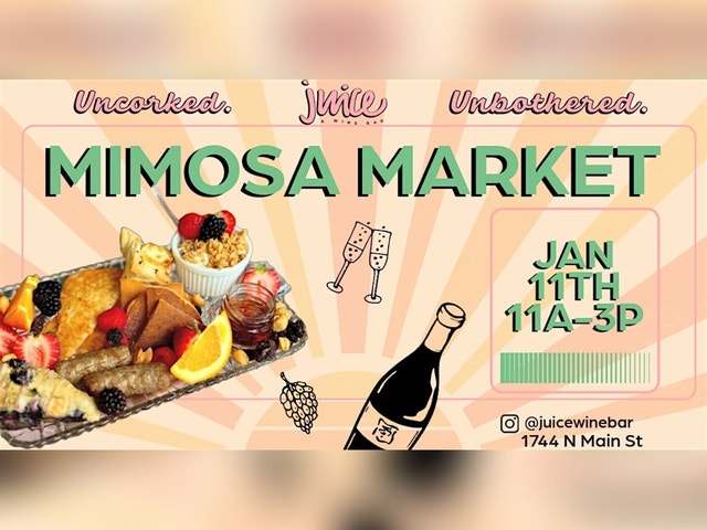 Mimosa Market! Come join us for an awesome shopping experience at Juice Wine Bar! Our NEW YEARS EDITION of Mimosa Market will feature local artisans and vendors showcasing unique gifts perfect for the season. Sip on mimosas while browsing through a variety of handmade crafts, jewelry, home decor, and more. Whether you're looking for a special gift or treating yourself, this event is the place to be. Don't miss out on this opportunity to support small businesses and find one-of-a-kind treasures. See you there!
