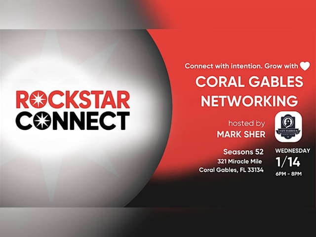 Your Community Starts Here in Coral Gables! What if building your network was as easy as sharing a laugh and a story? This isn’t your typical rigid networking — Coral Gables Networking powered by Rockstar Connect is where authentic relationships take root. More than an event, it’s a chance to be part of something bigger, meet genuine people, and discover shared passions. Join Mark Sher [https://www.facebook.com/mark.sher.37] for an evening of meaningful connection on Wednesday, January 14, 2026, from 6 PM to 8 PM at Seasons 52 [https://www.facebook.com/Seasons52CoralGables/]. Whether you’re an entrepreneur, professional, or neighbor looking to get more involved, you’ll feel right at home from the moment you arrive. Everyone is welcome. Come as you are. Leave with new friendships and a stronger sense of belonging. Join our Facebook Group: Coral Gables Networking powered by Rockstar Connect [https://www.facebook.com/groups/1530498090397196/] Visit our landing page: https://rockstarconnect.com/coral-gables/ [https://rockstarconnect.com/coral-gables/] Mark Sher http://www.safeharbourfinancialgroup.net/ [http://www.safeharbourfinancialgroup.net/] Rockstar Connect https://www.rockstarconnect.com/ [https://www.rockstarconnect.com/] Power up your networking with YEEGO! We're taking the incredible atmosphere of Rockstar Connect and amplifying its power. Now, the energy you feel in the room is matched by the intelligence in your hand, ensuring every spontaneous chat has the potential to become a strategic partnership... Make it happen, install the app now! - https://yeego.app/pods/bspsdi66xjx83k0 [https://yeego.app/pods/bspsdi66xjx83k0] All attendees are welcome, either living in or visiting the South Florida area, Miami-Dade County, FL Broward County, FL, Palm Beach, FL, Monroe Country, FL, Greater Miami, Florida area: South Miami, FL, Coral Terrace, FL, Glenvar Heights, FL, Kendall, FL, Westchester, FL, Pinecrest, FL, Sunset, FL, Olympia Heights, FL, University Park, FL, Key Biscayne, FL, Miami Springs, FL, Sweetwater, FL, Cutler, FL, Gladeview, FL, Coconut Grove, FL, Sunrise Harbor, FL, Gables Estates, FL, South Bay Estates, FL, Ocean View Heights, FL, Ludlam, FL, The Pines, FL, Silver Bluff Estates, FL, Coral Terrace, FL, Bay Heights, FL #events #networking #businessnetworking #connection #smallbusiness #entrepreneurship #business #meetup #opportunities #coralgables #florida #rockstarconnect