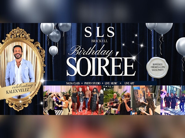 🎉 Birthday Soirée at SLS Brickell 🎉 📍 9th Floor – SLS Brickell Join us for a bi-weekly Friday night celebration featuring: • Salsa class to get you moving • Professional photo studio experience • Live music performances • Live art created throughout the night • Incredible Brickell Views ⏰ Fridays | 8–11 PM 9th Floor : Altitude Bar and Terrace 💃🏽 Social, vibrant, and effortlessly chic Whether you come to dance, mingle, or simply soak in the atmosphere — this soirée is designed to feel special from start to finish. This January, we celebrate Kalex Velez : he invites you to join the party!