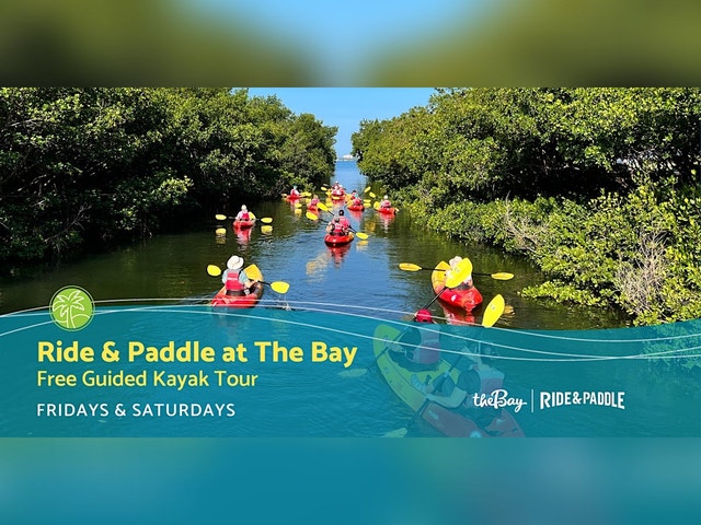 Experience The Bay from the water! Explore the restored mangroves and other flora and fauna of The Bay on this free, intermediate-level guided kayak tour led by one of Ride & Paddle’s expert guides (a $60 value!). Please refrain from registering for multiple dates to ensure there is enough space to accommodate everyone interested. Due to popular demand for free guided tours, registrations are accepted only four weeks in advance. Event sold out? Please consider the following options: * Check back online closer to the event to see if cancellations result in openings. * Stop by the Kayak Launch before the start of the scheduled Free Kayak Tour to see if there are any “no-shows". * Prefer to explore The Bay your own way? Ride & Paddle rentals are available. To reserve, visit: http://www.rideandpaddlethebay.com/ [http://www.rideandpaddlethebay.com/] Important Information * Age Requirements: This ride is only recommended for children 12 years and older. All minors must be accompanied by a parent or guardian. * Kayaks and life jackets are provided. * Where to Meet: Please go to The Bay’s ADA-accessible kayak and paddle launch located at the south-east edge of the bayou near the corner of Van Wezel Way and Blvd of the Arts. IF YOUR PLANS CHANGE: Space is very limited and due to popular demand, there is a growing waitlist. As a courtesy to other park guests, please quickly cancel your Eventbrite reservation if you are no longer able to attend so your spot can be released to someone else. Ride & Paddle is presented by the Amy P. Goldman Foundation.