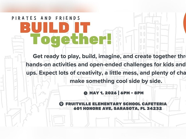 Fruitville Elementary School invites families to a fun, creative night on Friday, May 1st, from 6–8 pm! Come play, build, imagine, and create together through hands-on activities and open-ended challenges for kids and grown-ups. Bonus: Free pizza, soda, and ice cream — so no need to worry about dinner! This event is free and open to everyone, with activities for children of all ages. Bring friends, neighbors, siblings — the more, the merrier! Ample accessible parking is available at Fruitville Elementary School.