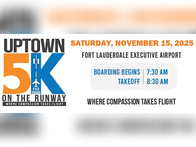 Compassion will take flight at Fort Lauderdale Executive Airport (FXE) on Saturday, November 15, 2025, for the 7th annual Uptown 5K on the Runway! Trustbridge Hospice Foundation and FXE invite community members of all ages to participate in a 5K fun run/walk on the FXE runway, where people, not planes, will take off from the runway. Registration is free but required. Register at https://p2p.onecause.com/uptown5k [https://l.facebook.com/l.php?u=https%3A%2F%2Fp2p.onecause.com%2Fuptown5k%3Ffbclid%3DIwZXh0bgNhZW0CMTAAYnJpZBExbGQ1RlN3M1FkcDJhdGlGdgEet93qe0JjHsOvPpC5EuaaFSzZxtgsSz5HKDUgBKMf3q8RT4bLX-KCNWpF1a0_aem_TQ_CwlG8zjXQUMipCs2mZQ&h=AT3XNhkTk5uhlN12K2vrHrdmTlOWf27IURnCRVy1yt8OqovteWKsyevW_0KKYGiD5zeCxdkxuGOngvLVZK3IFXA-vIQN04c3alAb7PzZw_1OfOLFXzDv6Dj8-_vhj7ISmivCt0GTebLUZJs0fHI&__tn__=q&c[0]=AT1mMuWrYPgDQ-n-npKrDez165DxIthJF8Q7DOV-plUEkXDivKj7zJQS0CmXbCifDdIUij24_vNgK1lVjFLSL27Eog7Dv9MFADBpqLw6gyYiHE2UYWGzHcEC7mOticuCSJhQoIeYXncOpI7kYdAjNLy-yO3CNuK-AQ0] today to save your spot! Boarding begins at 7:30am and Takeoff is at 8:30am. After taking in the sights and sounds on the FXE runway, participants will disembark into the Uptown 5K Village for fun, refreshments and festivities. Join us and celebrate Aviation, the Uptown community and Compassion Towards Others! All proceeds benefit Trustbridge Hospice Foundation.
