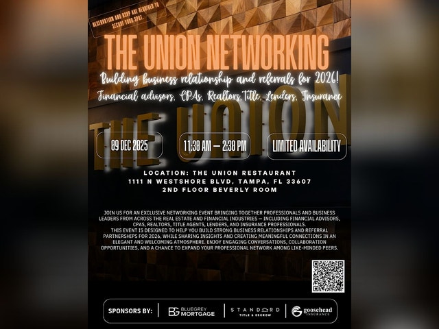 Join us for an exclusive networking event bringing together professionals and business leaders from across the real estate and financial industries — including Financial Advisors, CPAs, Realtors, Title Agents, Lenders, and Insurance Professionals. Hosted on the 2nd Floor – Beverly Room at The Union, this event is designed to help you build strong business relationships and referral partnerships for 2026, while sharing insights and creating meaningful connections in an elegant and welcoming atmosphere. Enjoy engaging conversations, collaboration opportunities, and a chance to expand your professional network among like-minded peers.