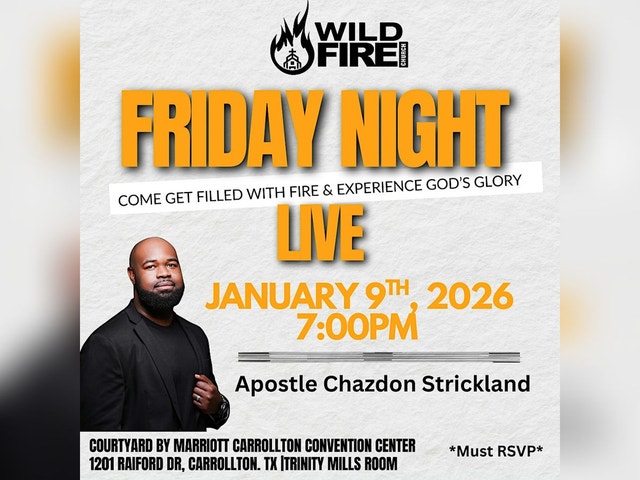 Get ready for an unforgettable evening! Join us in person for Friday Night Fire, with Apostle Chazdon! Come Hungry! Don't miss out on this powerful night—come get set on fire!