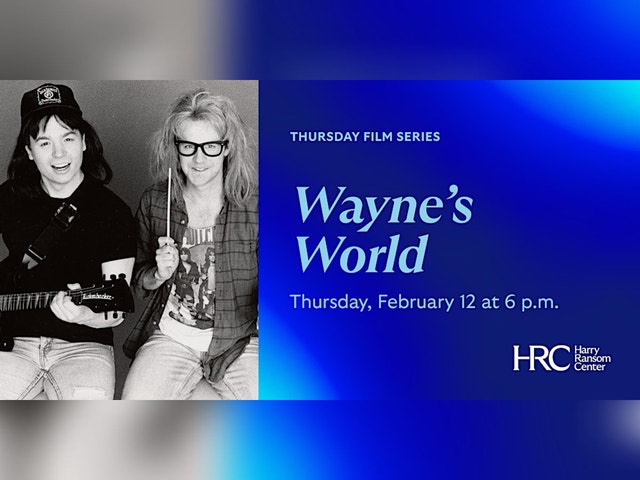 Join us for a screening of Wayne's World (1992), directed by Penelope Spheeris and produced by Lorne Michaels. A reception will follow the screening. This special film screening series features three notable films produced by Lorne Michaels and is held in conjunction with the Ransom Center’s exhibition Live From New York: The Lorne Michaels Collection. [https://www.hrc.utexas.edu/exhibitions/2025/live-from-new-york-the-lorne-michaels-collection/]