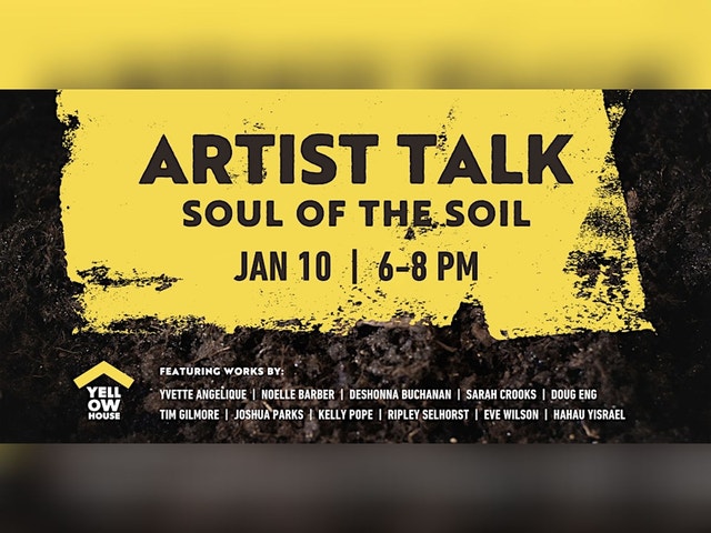 Join us Saturday, January 10 from 6-8pm for an evening of rich conversation with the artists of the Soul of the Soil exhibition. Hear directly from a diverse, wise, and compassionate group of artists whose works explore their connections to place, land, and memory. More than creative musings on dirt, the exhibition is a vessel for remembrance,repair and reimagination. There is no fee for this program, but we ask all who attend to bring items for our mutual aid efforts. Food, period products, books and art supplies are all welcome and needed. We will also gladly receive cash donations. We will have drinks and snacks. Space is limited to 25 folks so grab your seat today!