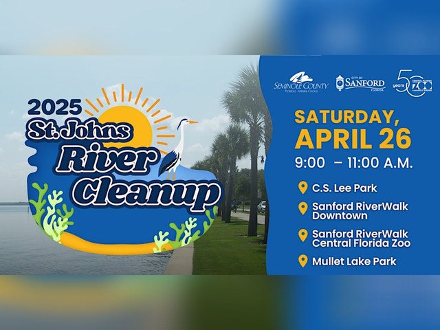 IF ANYONE HAS TROUBLE REGISTERING ON EVENTBRITE FOR TICKETS, PLEASE EMAIL SERV@SEMINOLECOUNTYFL.GOV WITH YOUR TICKET REQUEST Join Seminole County in the 2025 St. Johns River Cleanup this Earth Month! Make a difference by volunteering to clean up litter from this valuable waterway on foot, in your kayak/canoe, or your motorized boat. Bright Futures and other volunteer hours available. DATE/TIME: Saturday, April 26, 2025, 9 am - 11 am SITES: We will have multiple sites to choose from: * Sanford RiverWalk Downtown (401 E. Seminole Blvd., Sanford) * Sanford RiverWalk near the Central Florida Zoo and Botanical Gardens (3755 W. Seminole Blvd., Sanford) * Mullet Lake Park (2368 Mullet Lake Park Road, Geneva) * C.S. Lee Park (4600 FL-46, Geneva) VOLUNTEER OPTIONS: Choose to volunteer by walking and cleaning up litter along the shoreline, by bringing your own canoe/kayak, or by bringing your own trailered boat. Select the desired volunteer option when registering. ATTIRE: Pedestrian participants must wear closed-toe shoes. All volunteers should wear clothes that can get muddy/wet and should bring their own work gloves. Sun protection and bug protection may be desired. LIABILITY FORM: Each volunteer must have a printed, signed liability form to turn in upon arrival: youth version [https://www.seminolecountyfl.gov/core/fileparse.php/3270/urlt/Hold-Harmless-SERV-Youth.pdf] (under 18) or adult version [https://www.seminolecountyfl.gov/core/fileparse.php/3270/urlt/Hold-Harmless-SERV-Adult.pdf] (18 and older). CONTACT: Elizabeth Stephens, serv@seminolecountyfl.gov, 407-665-2457. COST: Free A special thanks to the City of Sanford, Central Florida Zoo and Botanical Gardens, and St. Johns Riverkeeper for their support!